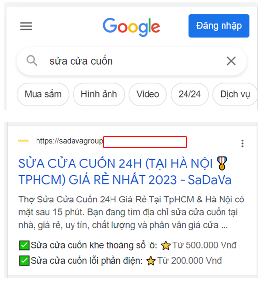 Bước 1: Vào trang tìm kiếm Google.com.vn gõ từ khóa: sửa cửa cuốn